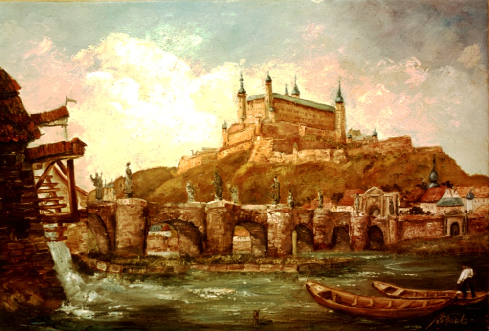 Alte Mainbrücke Würzburg mit Schloss Marienburg Historisch